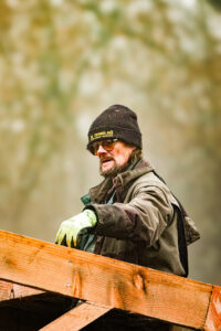 Zijn verhaal bij De Zonnegloed begon eigenlijk heel toevallig. “Ik was hier op bezoek met mijn kleinkinderen,” zegt Luc. “Ik zag al dat hout liggen, al dat werk dat nog moest gebeuren, en ik dacht meteen: hier wil ik nog werken.”