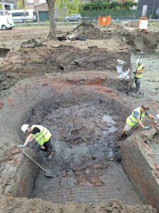 Het onderzoek concentreert zich momenteel op het achterste gedeelte van het terrein, dat tot en met het midden van de 20ste eeuw een laaggelegen gebied was met weides langs de Vleterbeek. In deze zone wordt vooral de evolutie van de Vleterbeekvallei en de aansluitende grachten onderzocht. Zo kon er een volledige doorsnede gemaakt worden door zowel de Vleterbeek als door een brede gracht, die vanuit het westen op de Vleterbeek aansluit. Of deze gracht het verlengde is van de middeleeuwse Hondsgracht is momenteel nog onduidelijk.