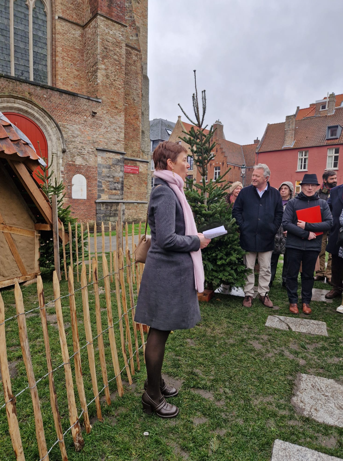 In de tuin van de Sint-Salvatorskathedraal in Brugge is gisteren een openingsmoment gehouden rond ‘De Kerststal van Brugge’. De grote houten kerststal is een privaat initiatief dat de sympathie en steun van velen geniet. “Omdat Kerstmis een oproep is voor een rechtvaardige en solidaire wereld, koppelen we een goed doel aan ons project”, zegt Doenja Van Belleghem.